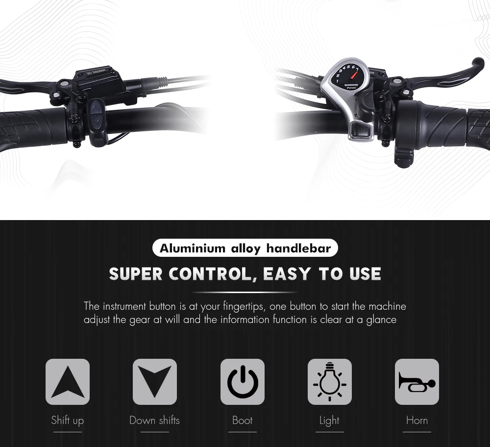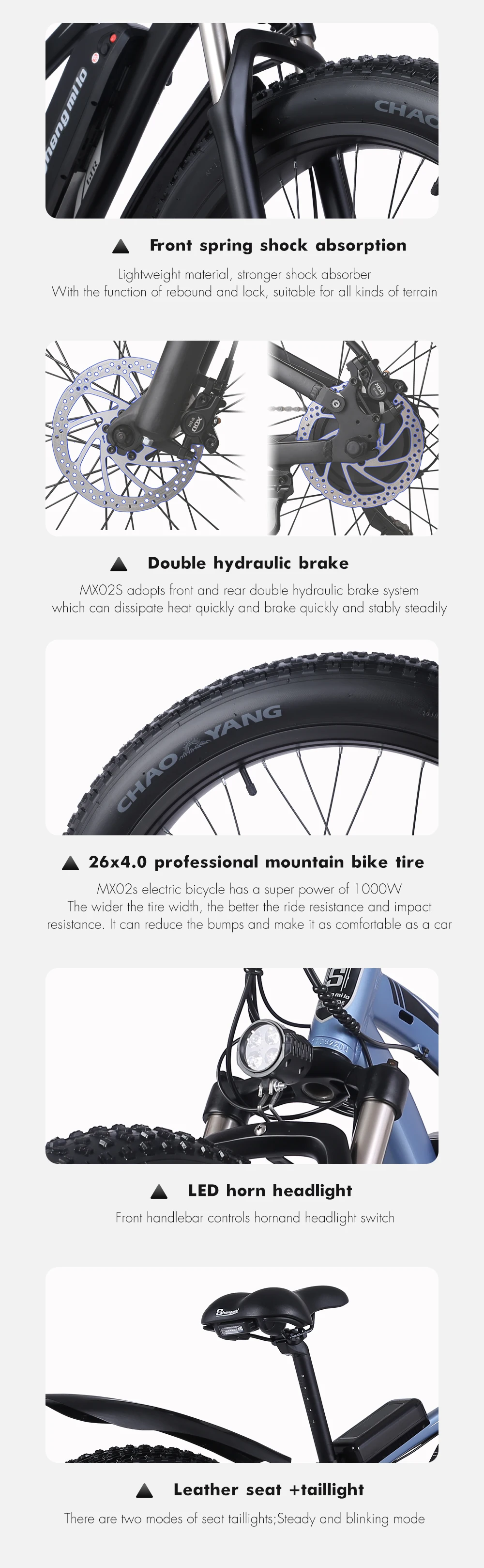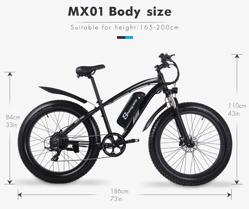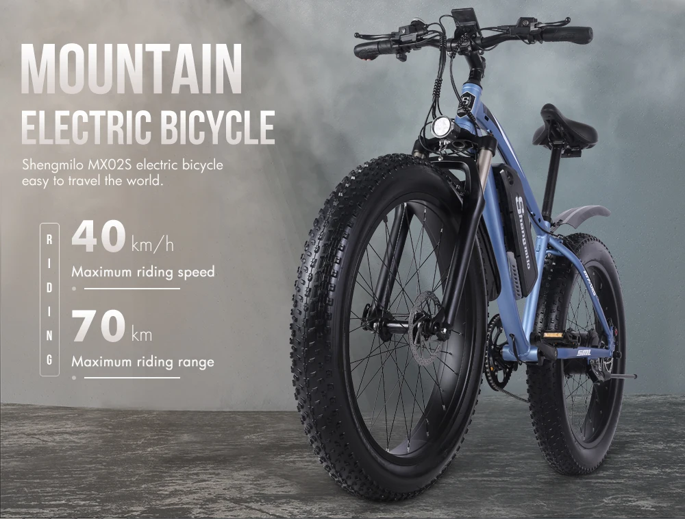 Crafted with a durable aluminum alloy frame, the SHENGMILO MX02S is built to withstand various riding conditions while maintaining a lightweight feel. This adult electric mountain bike features a 26-inch wheel size with 4-inch wide tires for enhanced stability and traction, making it ideal for uneven surfaces.