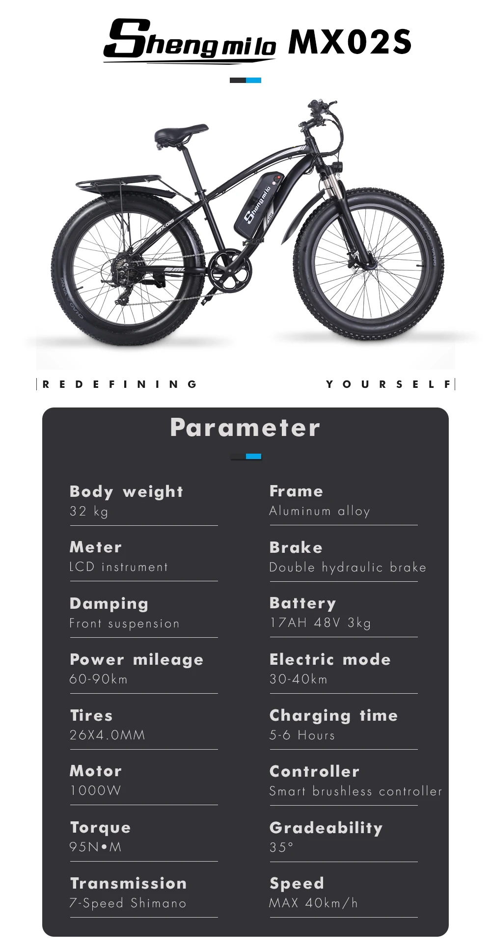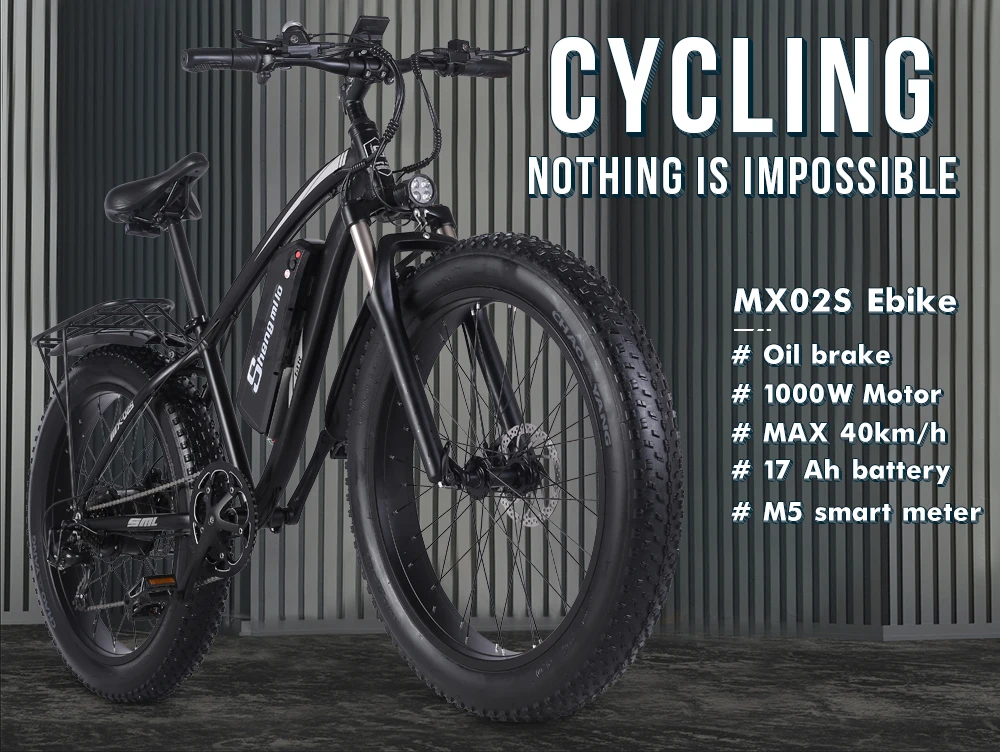 Discover the SHENGMILO MX02S, a robust electric bike engineered for adults who crave adventure on diverse terrains like off-road trails, beaches, snow, or city streets. With its powerful dual motor setup, this bike delivers reliable performance for sporty rides, combining eco-friendly technology with effortless handling.